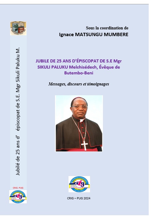Ce livret contient les différents messages, mots de circonstances, discours et témoignages ainsi que l’homélie prononcés à l’occasion du Jubilé de vingt-cinq ans d’épiscopat de S.E. Mgr Sikuli Paluku Melchisédech, Évêque de Butembo-Beni. De la hiérarchie ecclésiastique et civile jusqu’aux jeunes, en passant par diverses associations des fidèles, des messages ont été adressés à l’Évêque jubilaire, tant de l’intérieur que de l’extérieur du pays.
