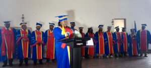 La cérémonie hautement scientifique a été ponctuée par le discours de la récipiendaire suivi de la remise de insignes de travail : la toge et le chapeau par le recteur de l’UCG, mais aussi la prise de photos avec de nombreuses embrassades entre différents docteurs en thèse, membres de familles, amis et connaissances.