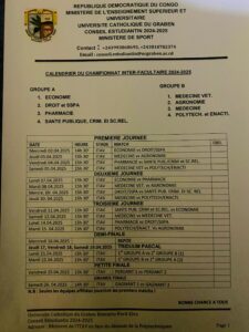 La première journée du championnat inter-facultaire de l’Université Catholique du Graben a été marquée par un match décisif entre la Faculté des Sciences Économiques, championne en titre, et la Faculté de Droit, qui s’est déroulé au stade de l’amitié de l’ITAV.