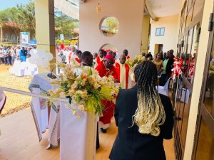 La cérémonie d’inauguration a été présidée par Son Excellence Monseigneur Sikuli Paluku Melchisedeck, évêque du diocèse de Butembo-Beni et Grand Chancelier de l’UCG, à qui l’ouvrage est officiellement dédié. Après une courte prédication, il a procédé à la coupure symbolique du ruban, suivie de la bénédiction de l’édifice.